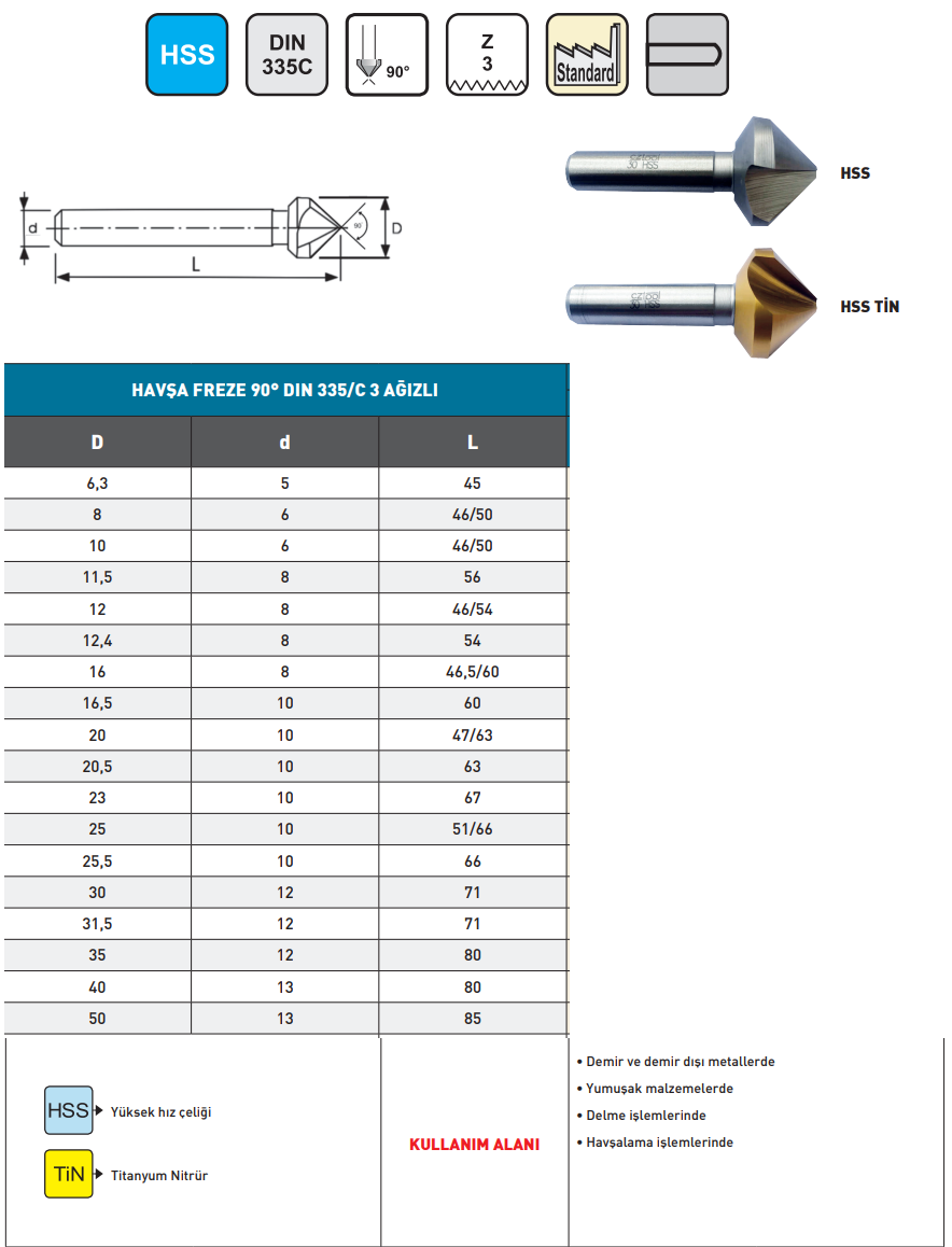 Pld 12.4mm Karbür Havşa Freze 90° DIN335/c