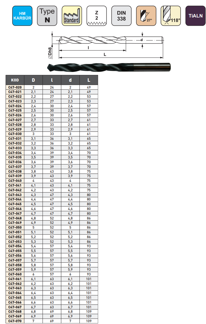 Pld 2.8x33x61mm Karbür Matkap Ucu DIN338 TIALN
