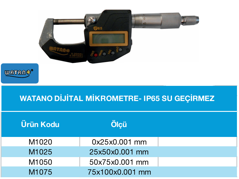 25-50mm Dijital Su Geçirmez Mikrometre Watano IP65