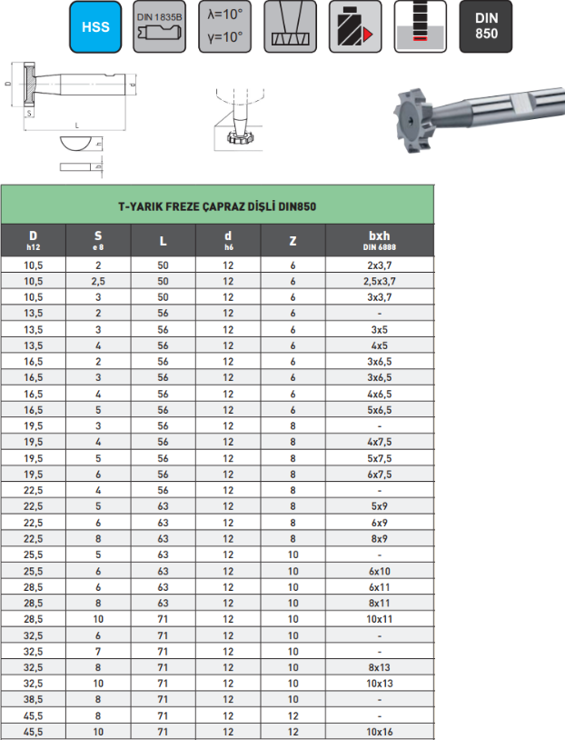 Pld 28.5x6mm T-yarık Freze HSS DIN850