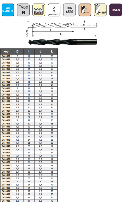 PLD 3.6x20x52mm Karbür Matkap Ucu Din6539 Tialn