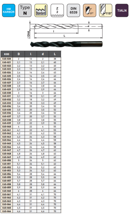 Pld 3x16x46mm Karbür Matkap Ucu DIN6539 TIALN
