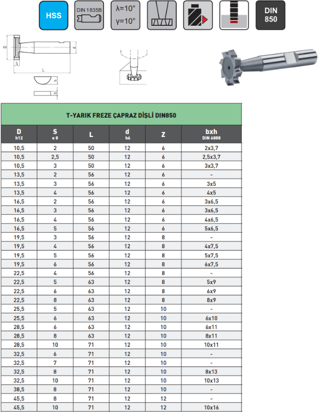 PLD 45.5x10mm T-yarık Freze Hss Din850