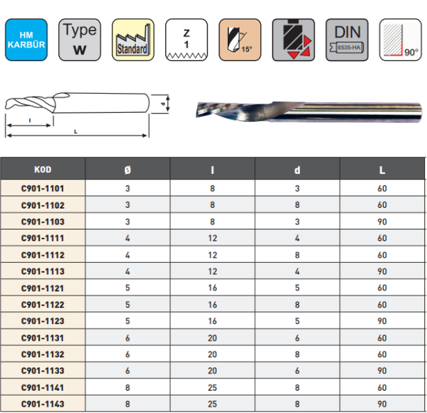 PLD 5x16x5x90mm Tek Ağız Özel Karbür Freze
