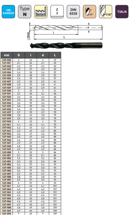 Pld 6.7x63x101mm Karbür Matkap Ucu DIN338 TIALN