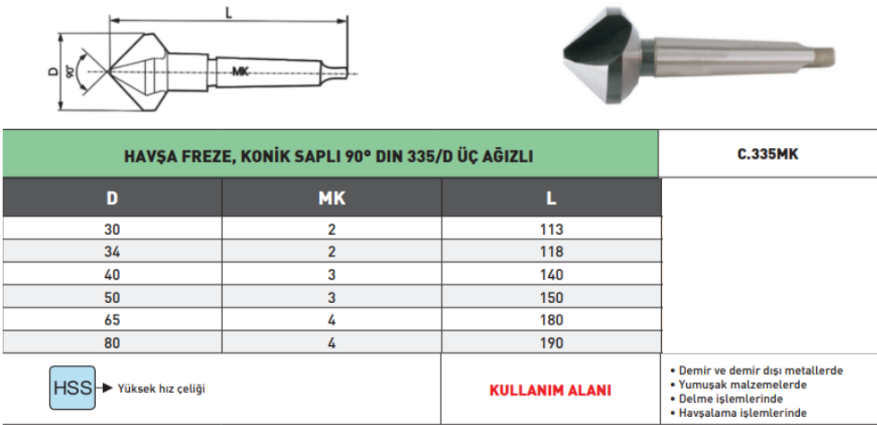 Pld 65mm Havşa Freze Mk4 90° HSS DIN335/d