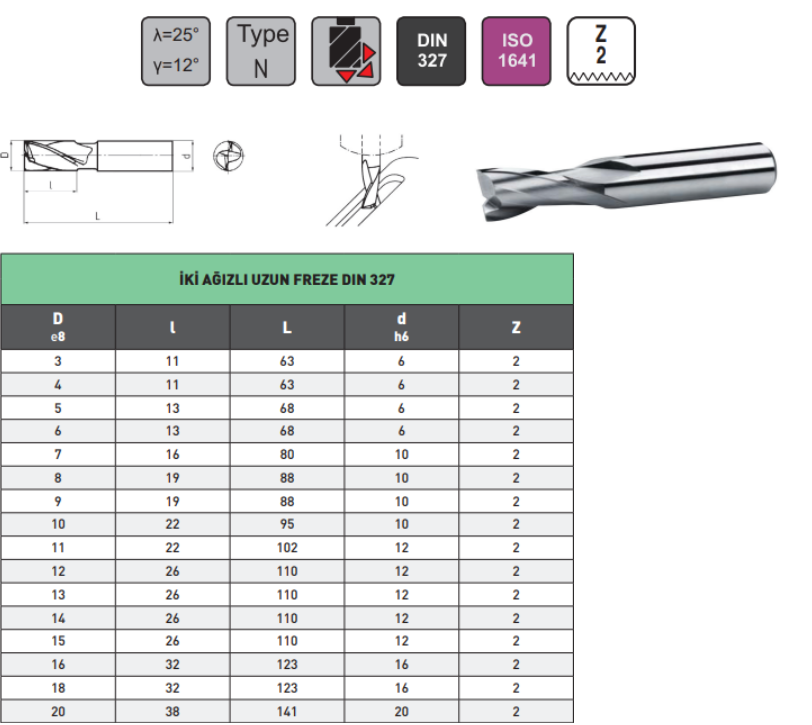 PLD 9mm 2 Ağız Uzun Parmak Freze Hss