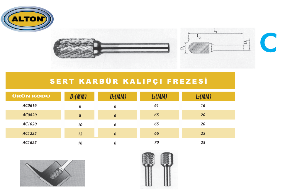 Alton C Tipi Karbür Kalıpçı Freze 8mm