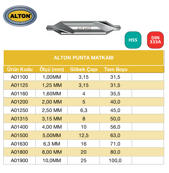 Alton Standart Boy Punta Matkabı - 10mm