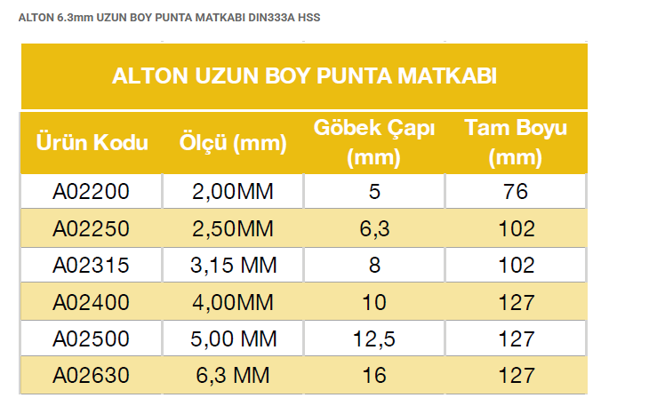 Alton Uzun Boy Punta Matkabı - 2mm