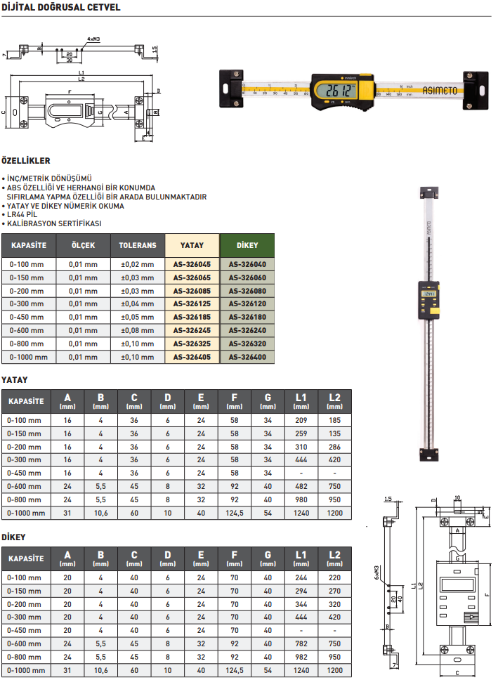 Asimeto Dijital Doğrusal Cetvel 0-800 mm Dikey AS-326320
