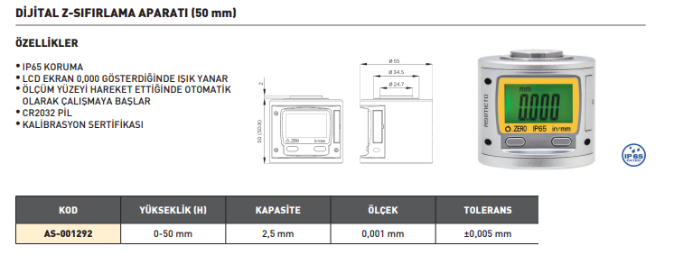 Asimeto Dijital Z-Sıfırlama Aparatı 0-50mm AS-001292