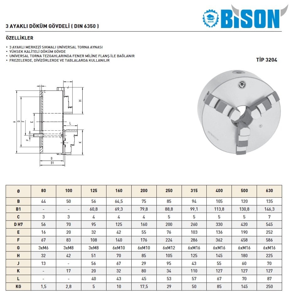 Bison Döküm Gövdeli 3 Ayaklı Torna Aynası 125×3 TİP 3204