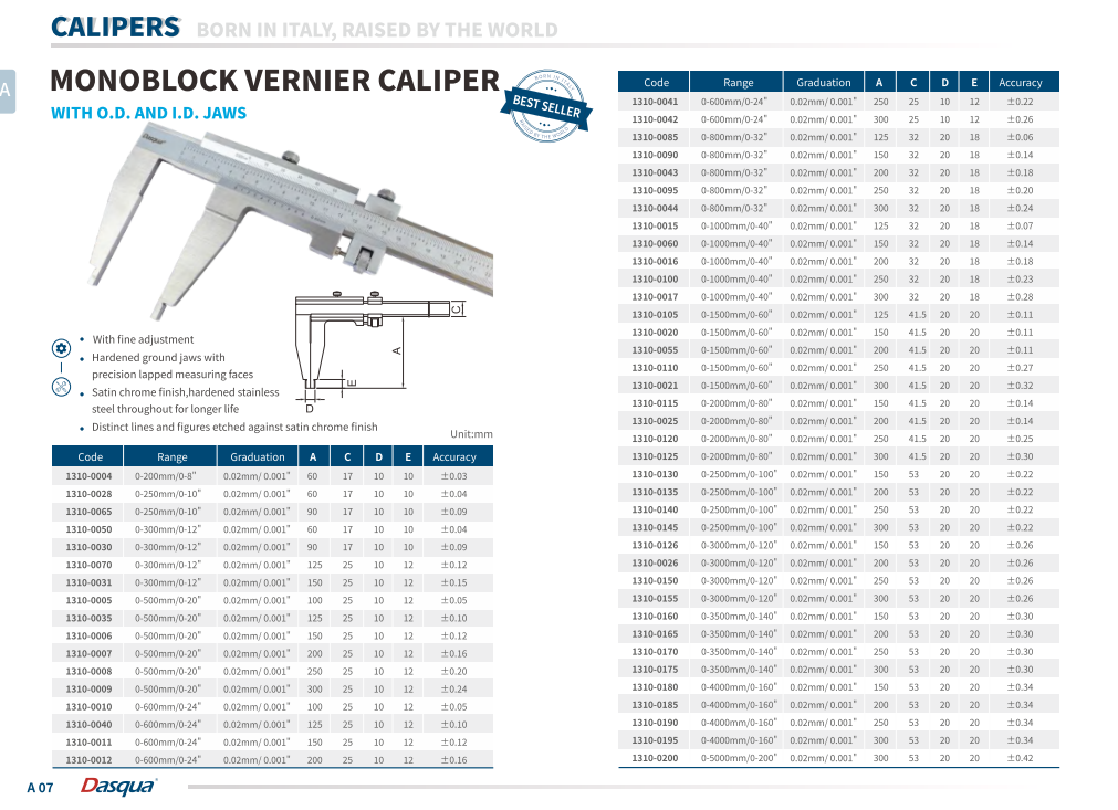 Dasqua 0-1000mm Tek Çene Mekanik Kumpas 0.02mm Çene Boyu 200mm