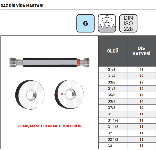 Pld G2 1/2''-11 Erkek Vida Mastar Seti 2b DIN228