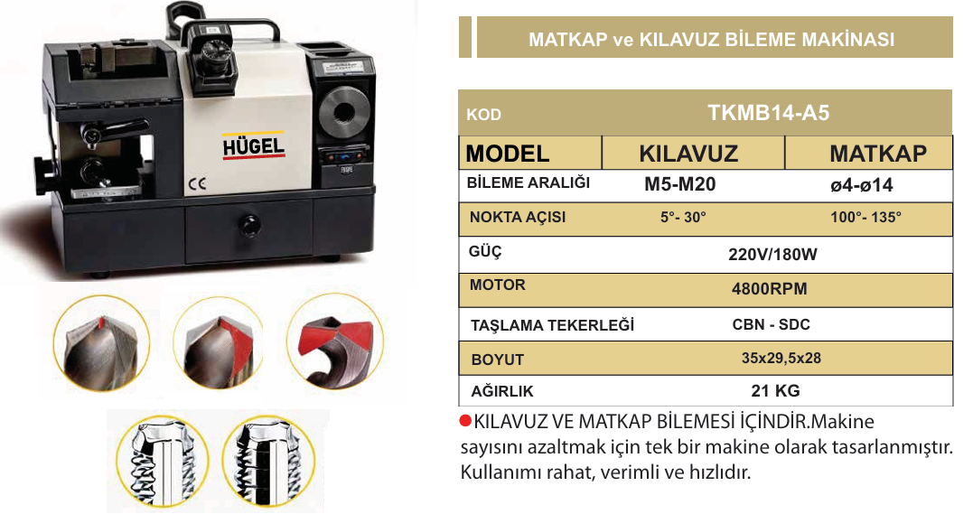 HÜGEL TKMB14-A5 Matkap ve Kılavuz Bileme Makinası