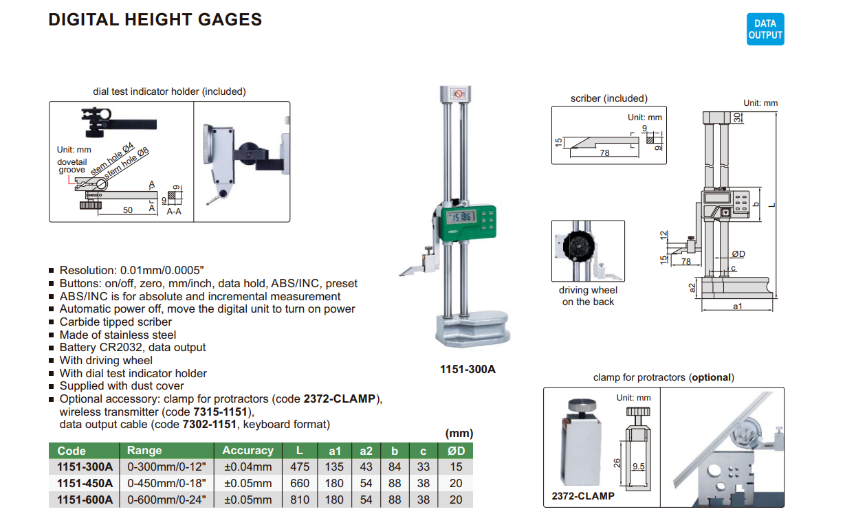 INSIZE 1151-450 Dijital Yükseklik Mihengiri Çift Sütun
