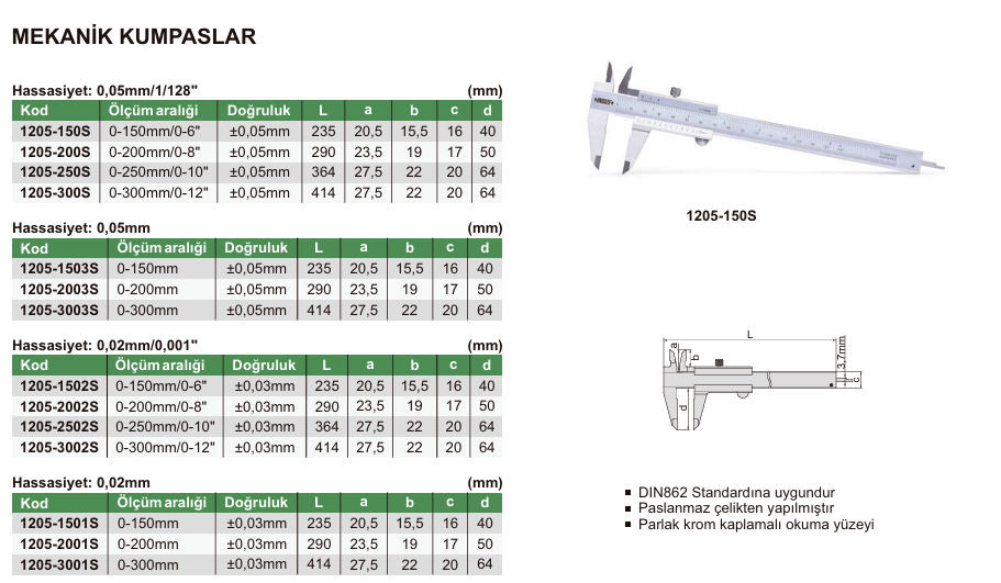 INSIZE 1205-150S Mekanik Kumpas Standart Model 150 mm