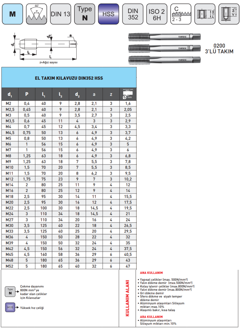 Pld M12 Sol El Kılavuz Takımı DIN352 HSS