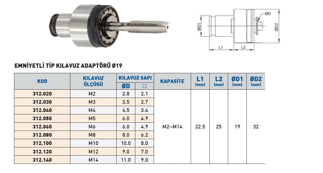 M16 DIN376 Kılavuz Çekme Adaptörü (ø19)