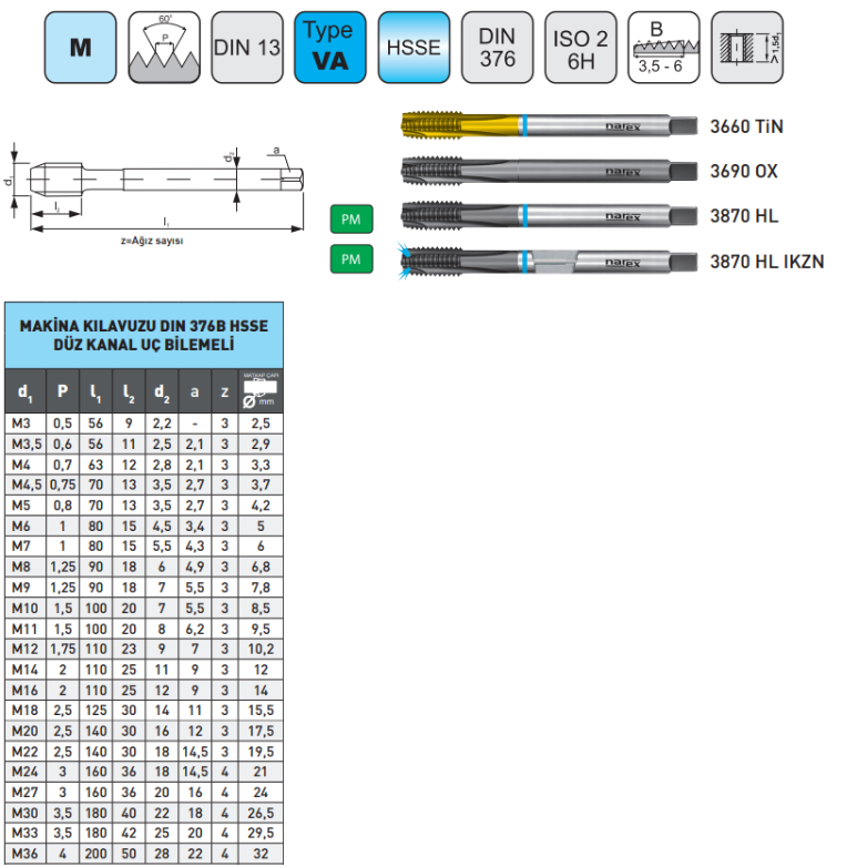 Pld M27 Makina Kılavuzu DIN376/b HSS TİN