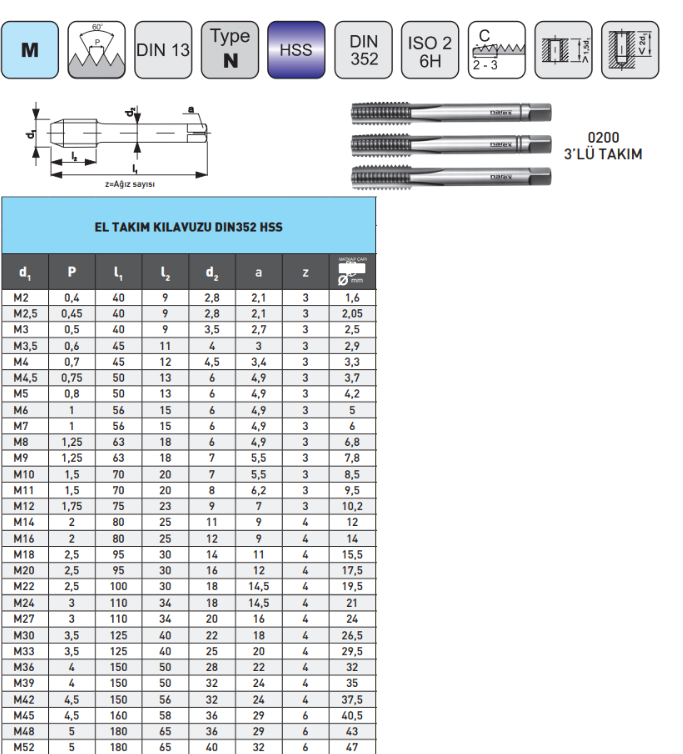 Pld M30 El Kılavuz Takımı DIN352 HSS