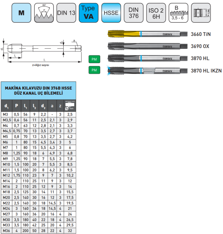 Pld M4 Makina Kılavuzu DIN376/b HSS