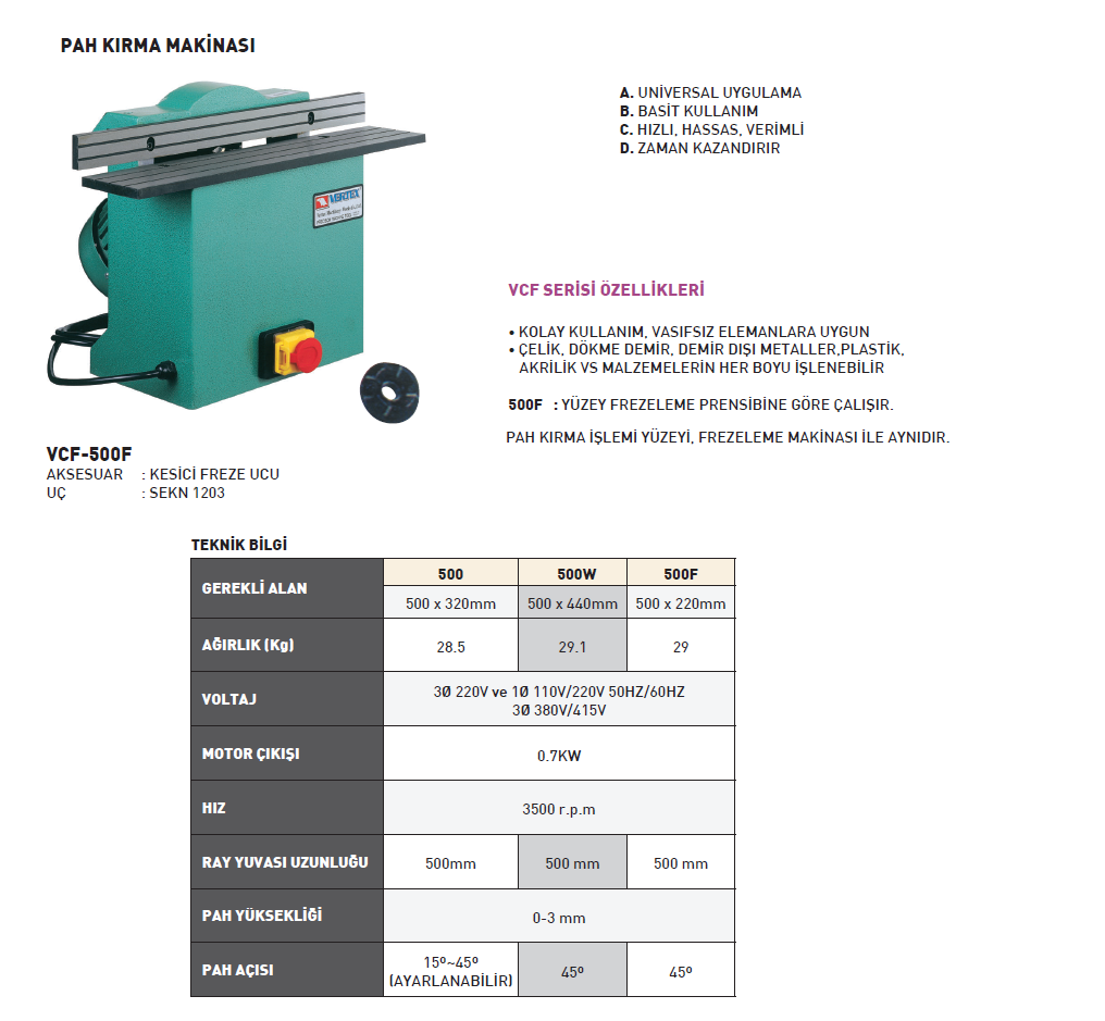 VERTEX VCF-500F Pah Kırma Makinası 500 mm